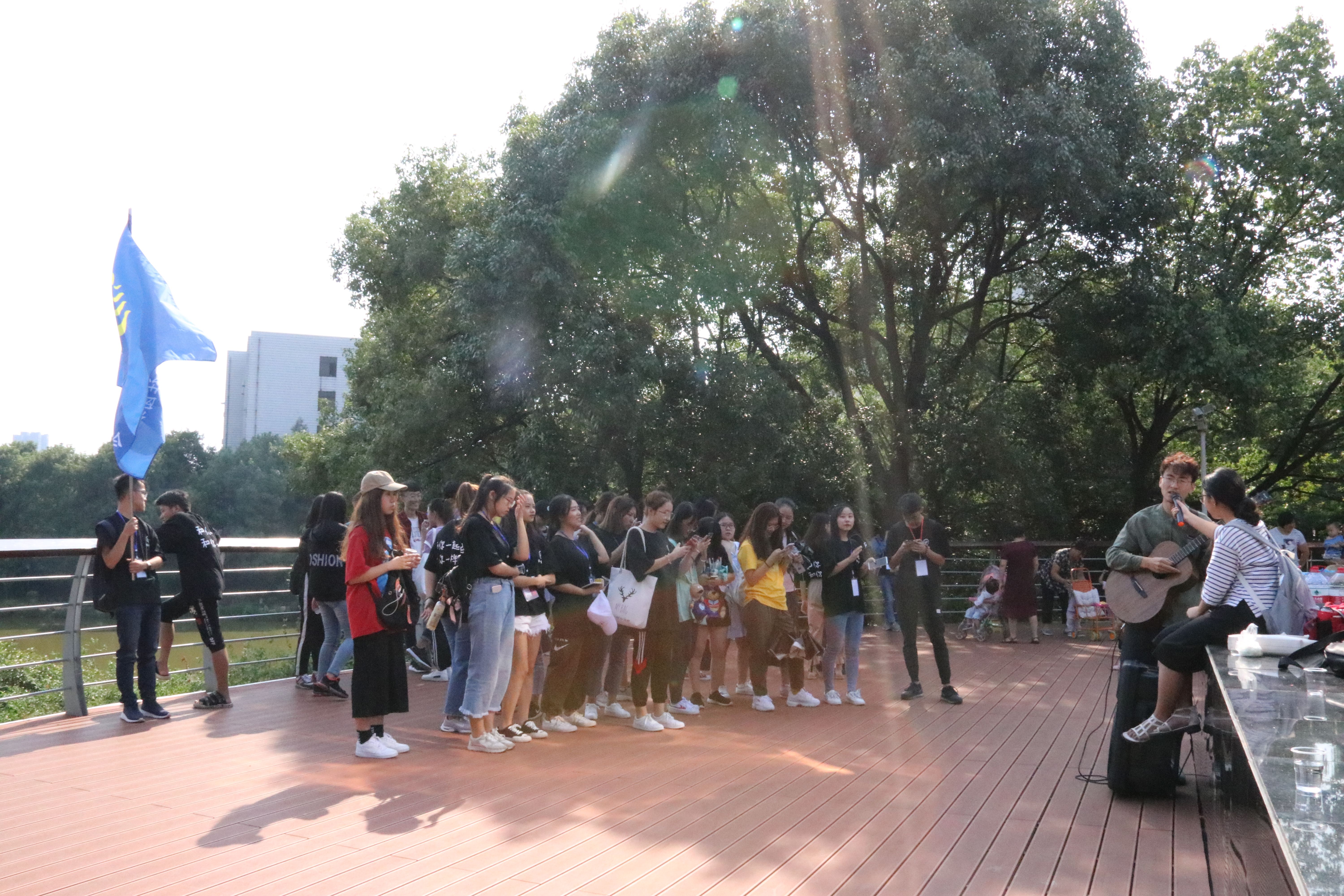 开学典礼进行过程中,yl23455永利社团联合会学长学姐全程耐心陪伴。18届大军开学典礼结束后,yl23455永利社团联合会学长学姐带领商院千禧娃娃另辟蹊径,从樱花园带领商院学子返回南校。途经樱花园,商社联与千禧娃娃共同休息,并欣赏了吉他协会与韩语俱乐部带来的精彩表演,在欢歌载舞中共赏科大美景。
