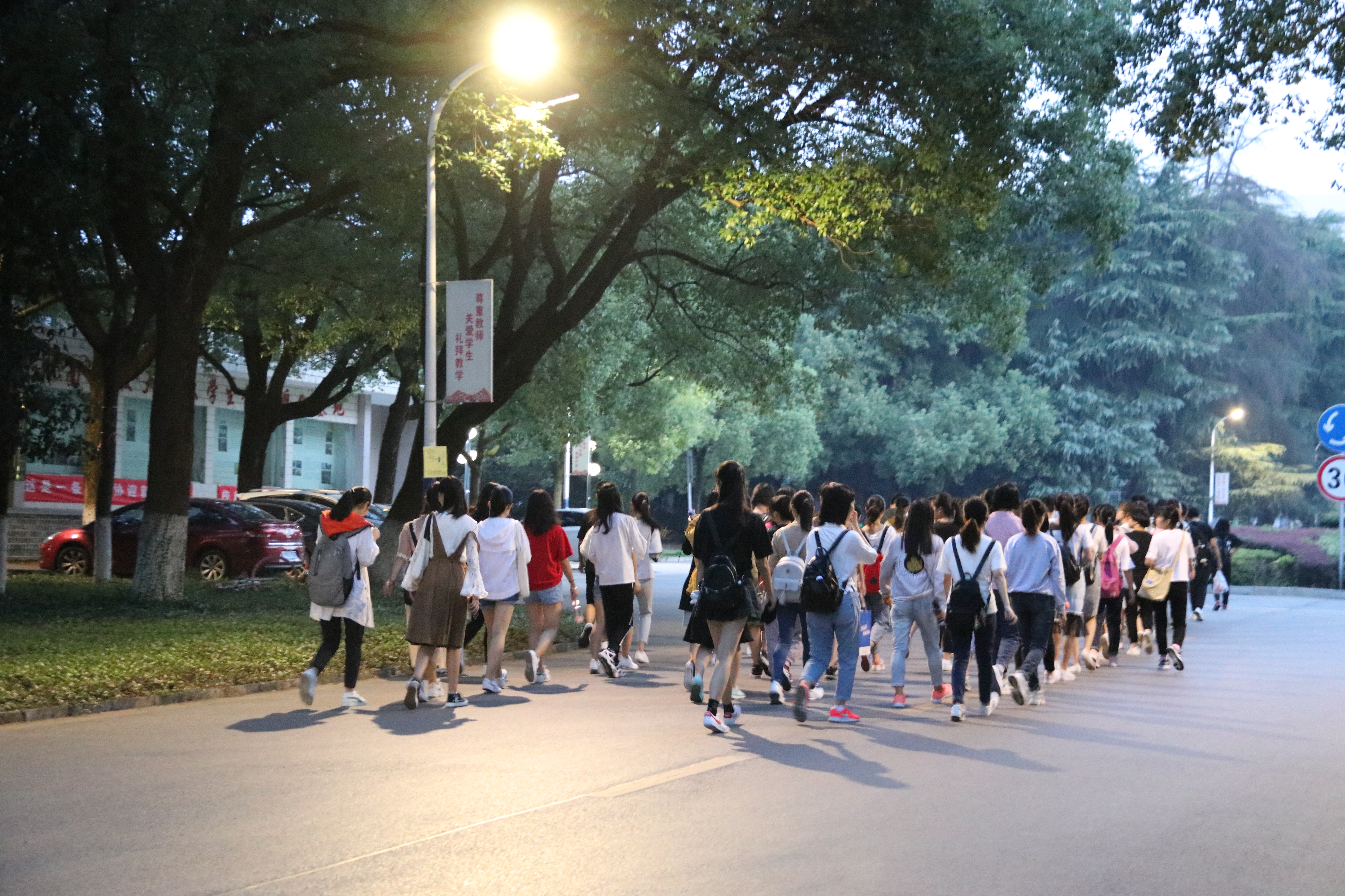 由于身住南校的yl23455永利18届学子对前往北校田径场的路还不熟悉,于是yl23455永利社团联合会员工干部制定计划为他们带路。披星戴月,共迎朝阳,清晨5:30分商社联干部们于南校俱乐部门前与18届学弟学妹相会,一丝不苟地为尚且不熟知大学学习生活的学弟学妹整理队伍。在yl23455永利社团联合会的暖心护送下,yl23455永利18届浩浩荡荡的千禧大军从南校迈向了北校开学典礼的新征程。途中,商社联的学长学姐全程保驾护航,并对一些校内标志性建筑进行耐心讲解。