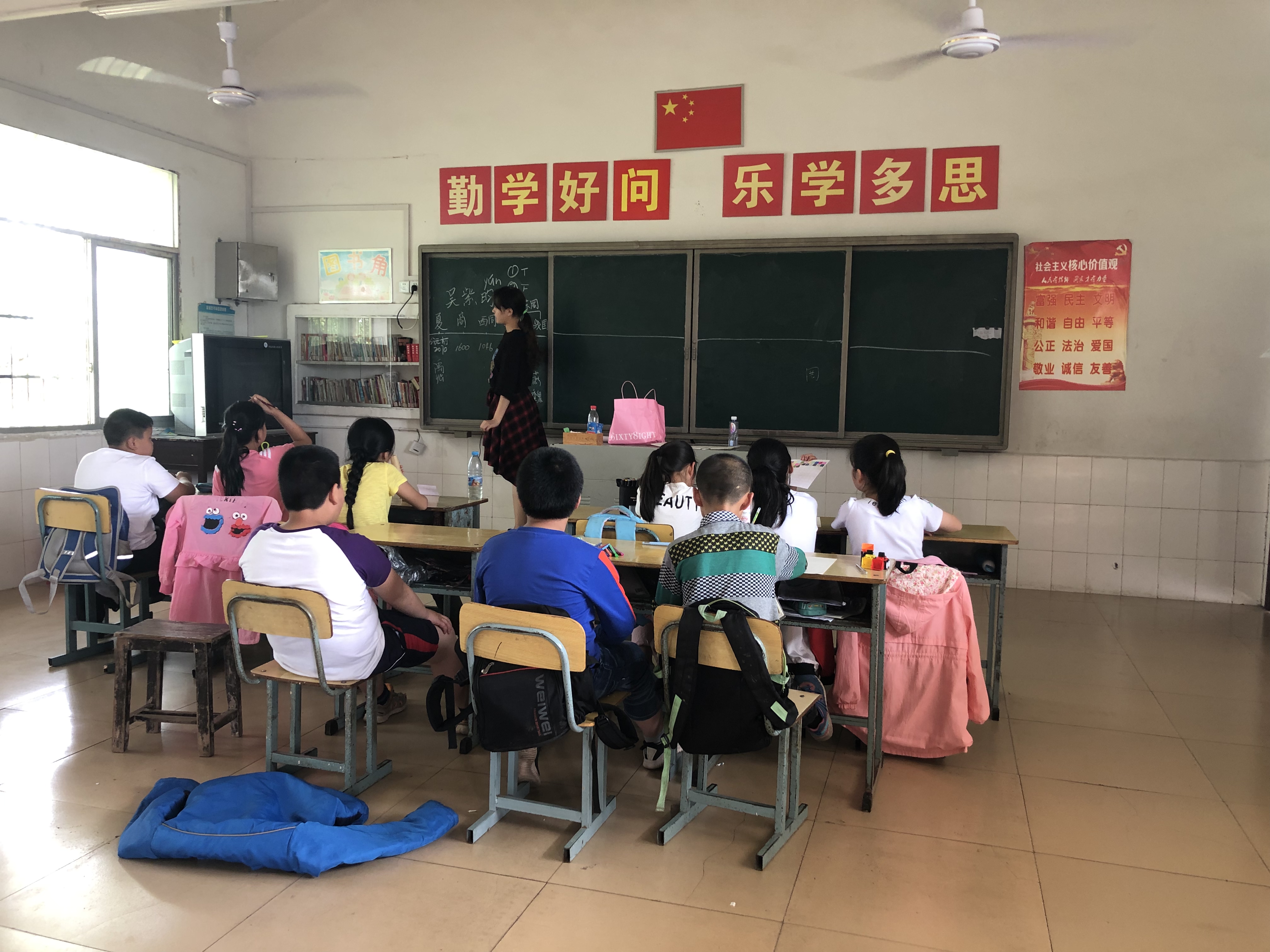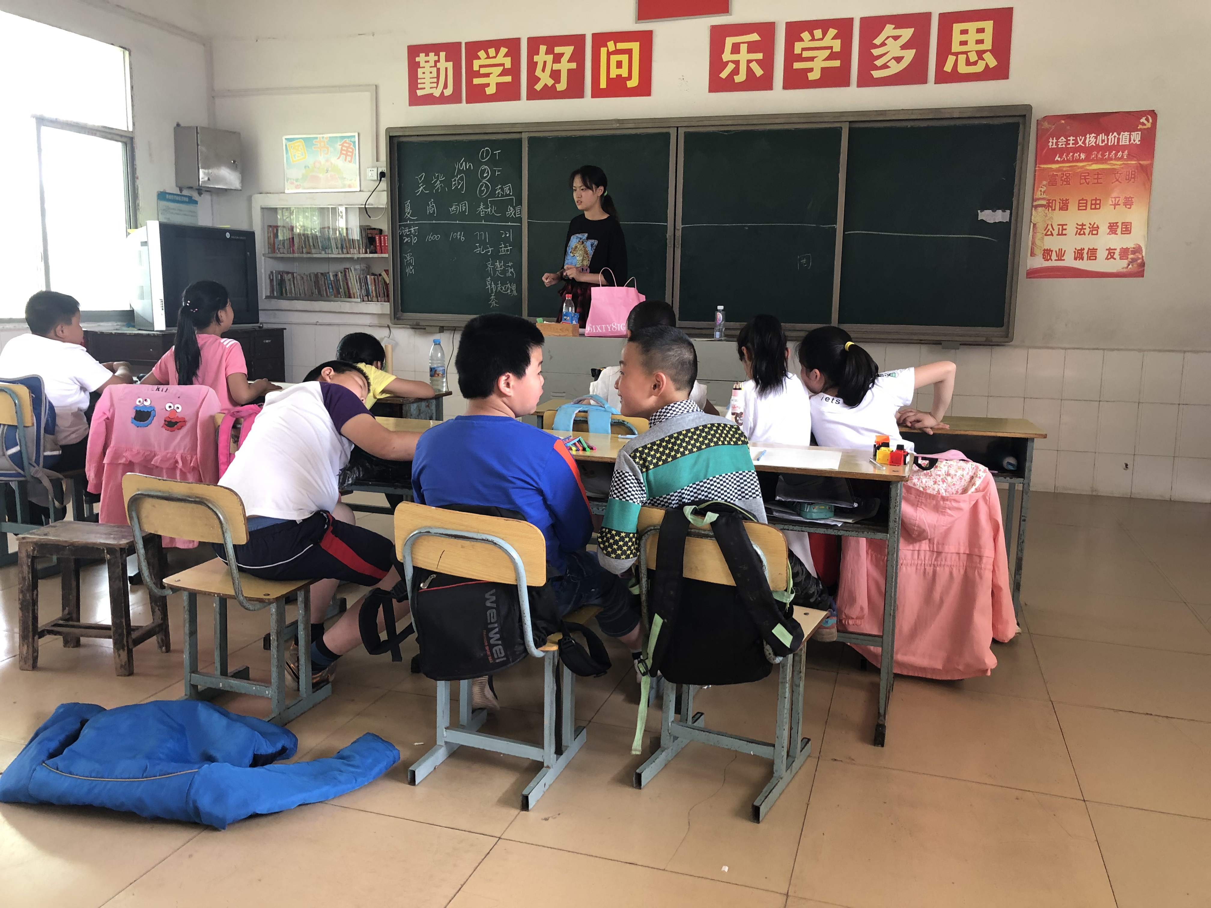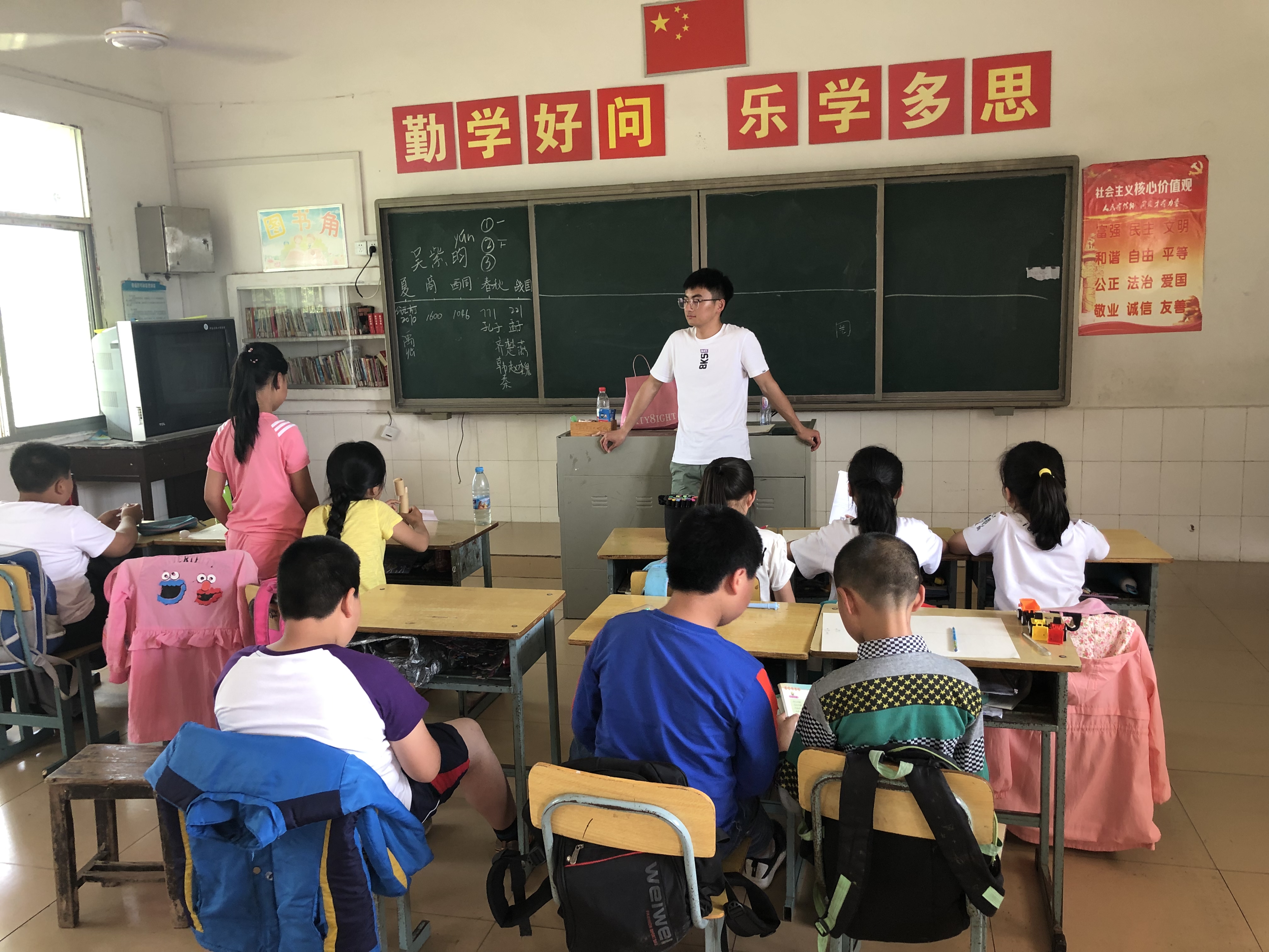 本次活动的重点在于提高教学质量,打造趣味课堂。对此,志愿者们根据不同年龄段的孩子们的认知水平,准备了针对性的教学方法与精彩课程,建立了一种寓教于乐的互动教学模式:语文课上以趣味猜成语、猜谜语的方式为孩子们增加词汇量,以手抄报与古诗作者结合的形式普及历史知识;英语课上让孩子们用英文进行自我介绍,以此提升他们的口语能力和演讲能力。课间与孩子们做游戏,打篮球,拉近于孩子们的距离的同时提高他们学习的兴趣和积极性。最后,志愿者们还为孩子们分发了文具盒作为奖品。