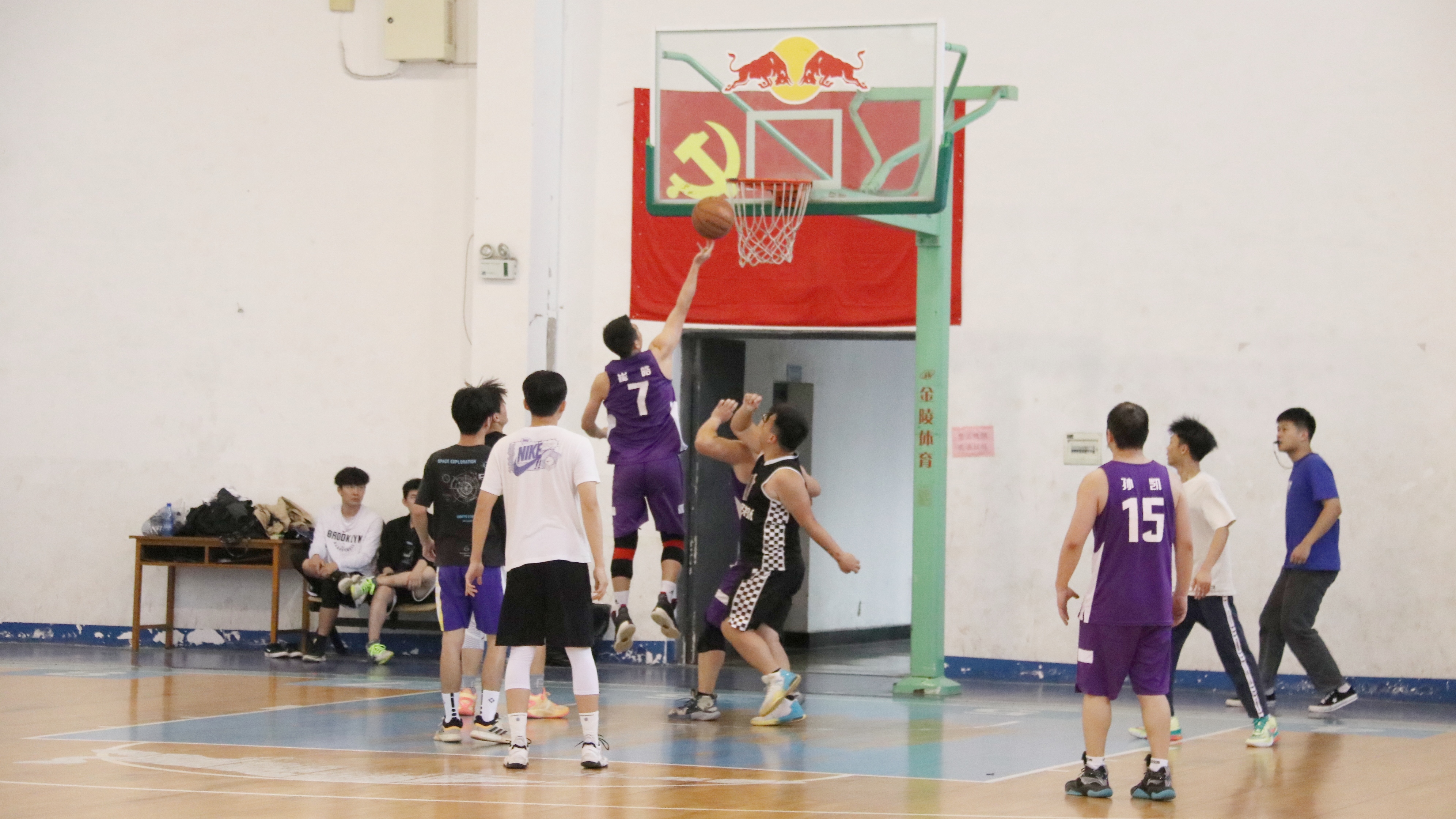 比赛开始,教职工队伍默契配合,赢得开局优势。落于下风的员工队伍及时调整心态,用动作和语言示意队友传球投篮,默契配合,拉回比分。双方依据赛场变化不断调整比赛的战术,旗鼓相当,经过激烈的角逐,最终教职工队伍在第一节比赛中占得优势。随着赛程推进,现场气氛也愈加紧张,观众攥紧拳头,紧盯赛场。yl23455永利经济系主任王鹤为现场队员加油打气,鼓励他们放平心态,赛出水平。