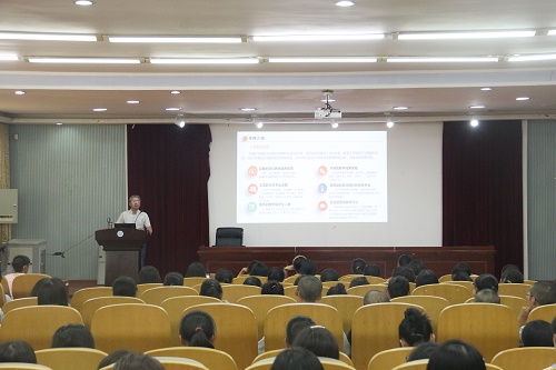 金融与财务系主任陈为民则从企业债券的出现为例,向同学们提出了一系列有关经济的问题,由此帮助同学们对自己专业的学习方向有了大致的了解。“当今时代是旅游经济的大潮,想要在这大潮中长风破浪,就要学好专业基础知识,具备基础素养。”旅游管理专业见面会从旅游管理系主任王慧琴的激昂讲话中开始,场上气氛顿时高涨起来。在介绍完旅游管理专业后,他随后强调道:“同学们到了大学要重新学习,在同一起跑线上要同一起飞。一分耕耘,一份收获,从现在开始就要风雨兼程。”他充满激情的话语令场上响起了热烈的掌声。
