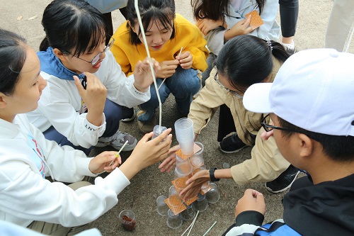 本次活动由心理健康教育服务部常务副部长刘科宏带头组织。此次活动一共分为五个环节,分别是辨别乌龟乌贼乌鸦、吸管传递皮筋、记名字、抢凳子以及解手链。破冰游戏使得现场笑声不断。在辨别乌龟乌贼乌鸦的游戏中,听到乌龟这个词时需抓住右边的人的手指,同时也要注意自己左边的同学是否会抓住自己的手指,但常常会有人听错名词,例如“乌贼、乌鸦”等词,现场氛围轻松愉快,参与游戏的新生通过破冰游戏迅速和周围同学熟悉起来。而最后的解手链环节,每个人需记住自己左右两边的人,将人物顺序打乱之后,再牵起最初站在自己旁边的人的手,形成一个复杂的手链。针对这一游戏,心健部副部长王文誉表示:“其实这个游戏需要领导人物,也需要个人的配合。我们的班团组织就像这个游戏的指挥,他们发挥着重要的作用。希望通过这个游戏,能更好地培养他们的团体意识,增进他们的同学感情。”